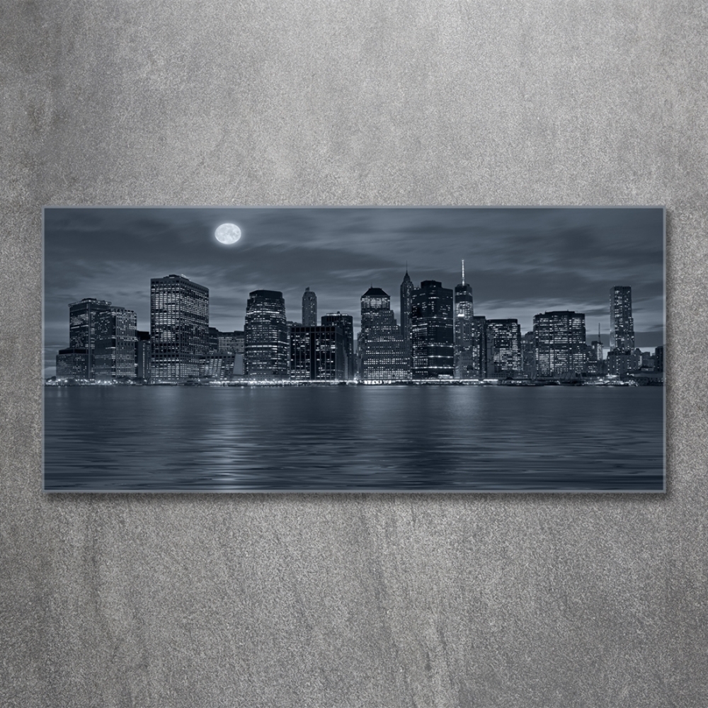 Szklany foto obraz Nowy Jork nocą będzie idealnym wykończeniem ścian w pokoju.