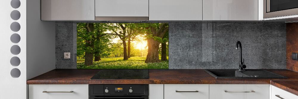 Panel na szkle Drzewa w parku może radykalnie zmienić wystrój Twojej kuchni.