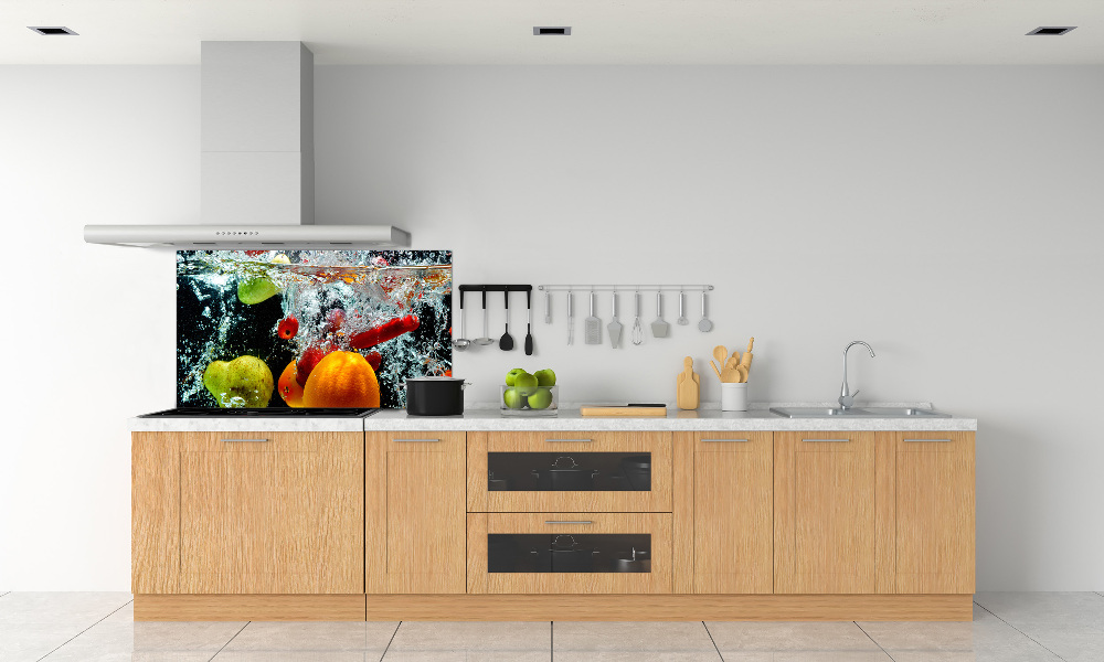Panel na szkle Owoce pod wodą może radykalnie zmienić wystrój Twojej kuchni.