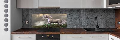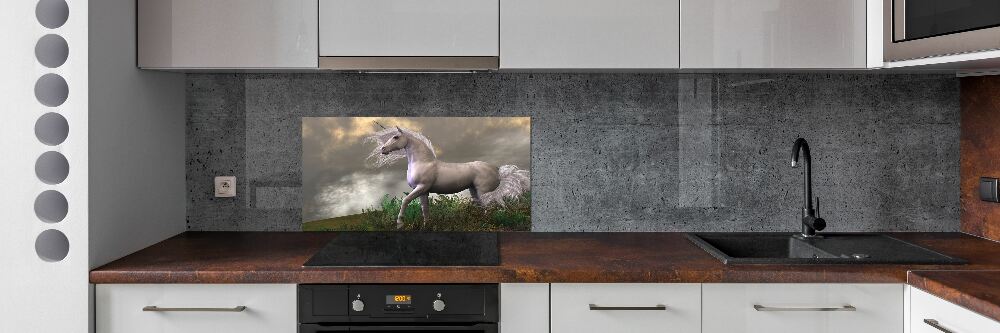 Panel na szkle Szary jednorożec może radykalnie zmienić wystrój Twojej kuchni.