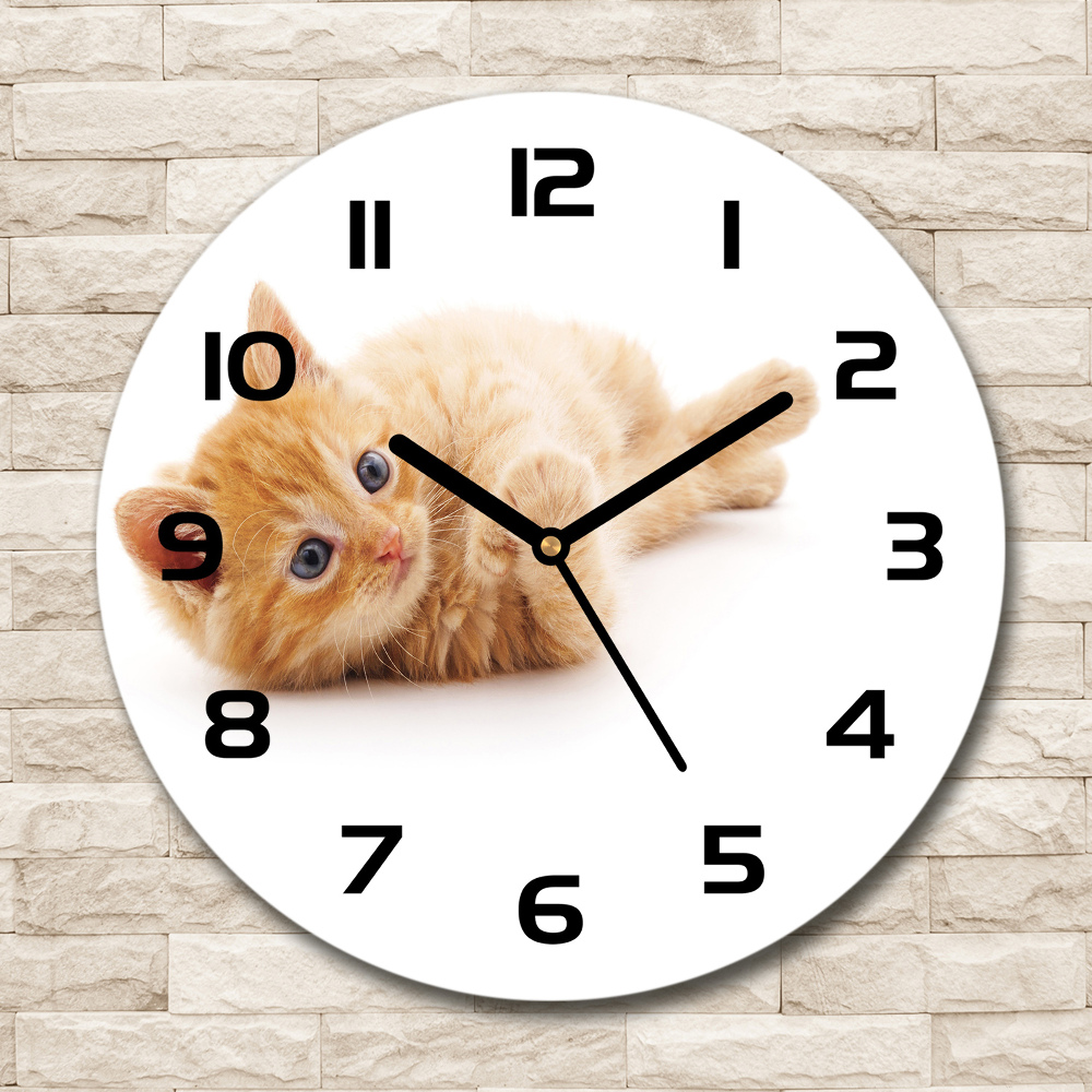 - Zegar ścienny szklany okrągły Rudy kot