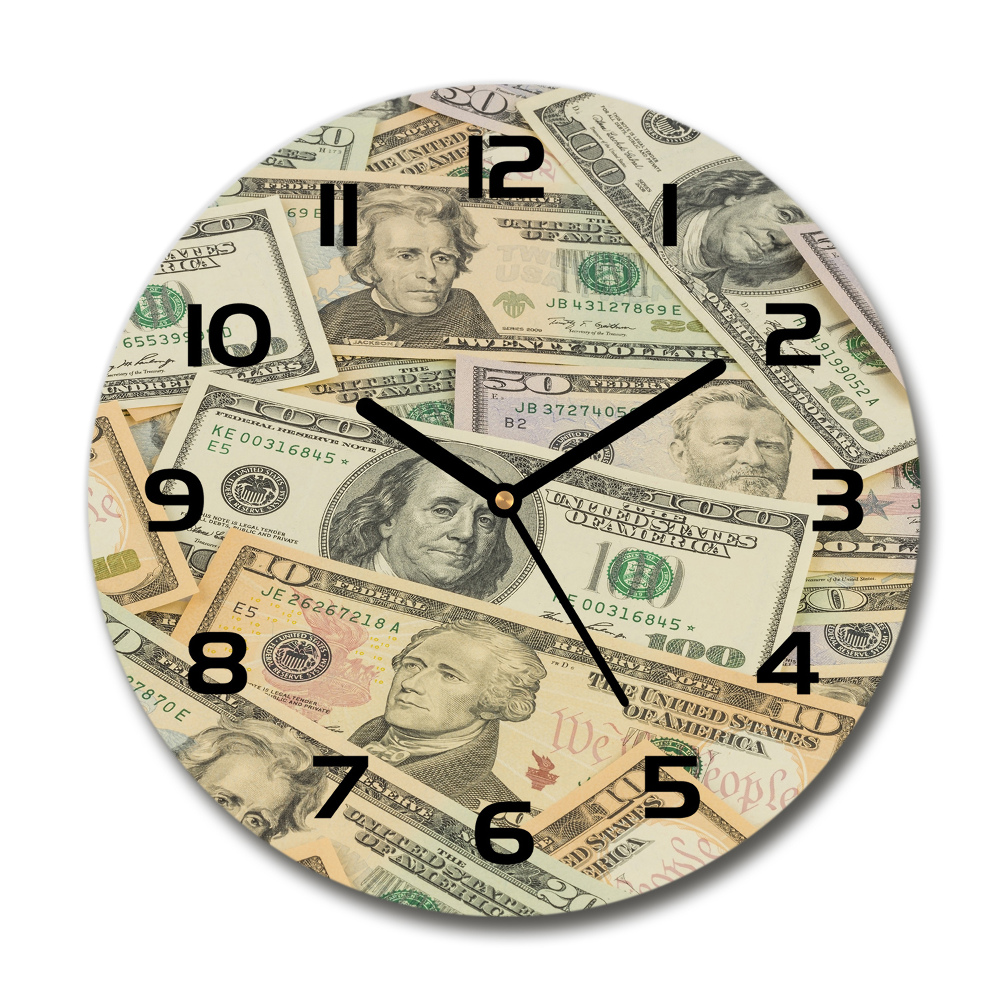 Zegar na szkle Banknoty dolarów - jedna z najnowocześniejszych dekoracji ścian.