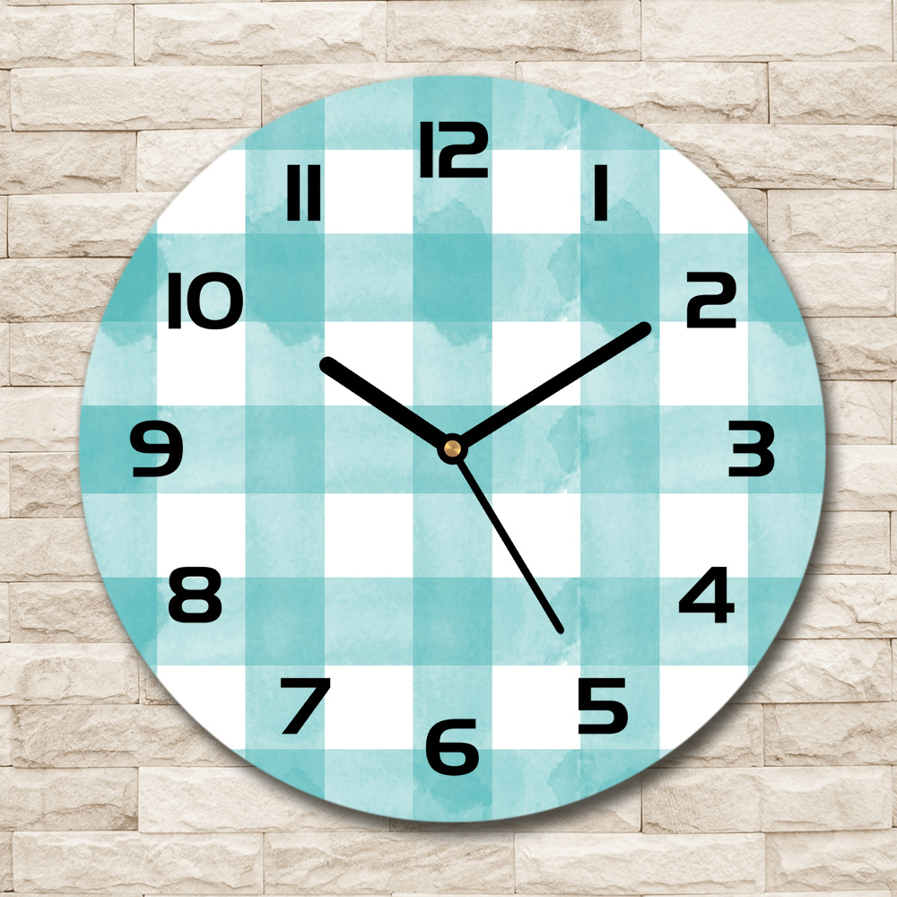Zegar na szkle Niebieska krata - jedna z najnowocześniejszych dekoracji ścian.
