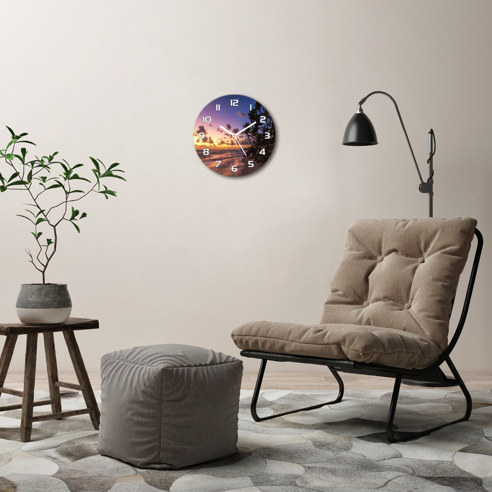 Zegar na szkle Zachód na plaży - jedna z najnowocześniejszych dekoracji ścian.